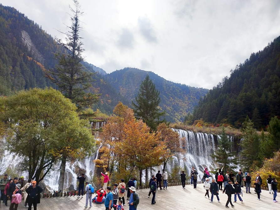 10月24日下午,九寨溝諾日朗瀑布前游人如織。杜江茜攝