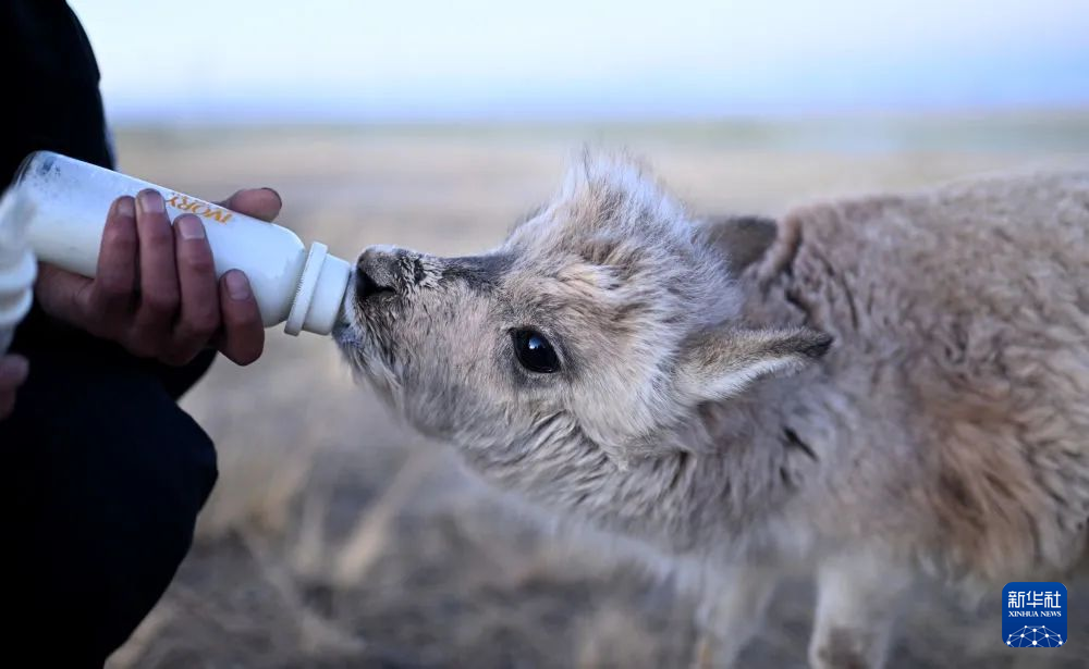 “這三只小家伙都是去年藏羚羊遷徙產(chǎn)仔時(shí),我們從‘藏羚羊大產(chǎn)房’卓乃湖救助回來(lái)的,現(xiàn)在它們已經(jīng)快半歲了,你看它們吃得多香。”才文多杰一邊將“流著汗珠”的奶瓶喂給小羊,一邊觀察著小藏羚羊的身體狀況。