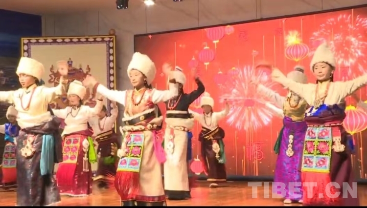 村晚在“新年新氣象,愿大家的生活如同高原上的雄鷹,自由翱翔在幸福的天空;愿每個人的笑容如雪山之巔的雪蓮花,純潔而美麗...扎西學(xué)!”《吉祥禮贊》的祝福詞中開始。