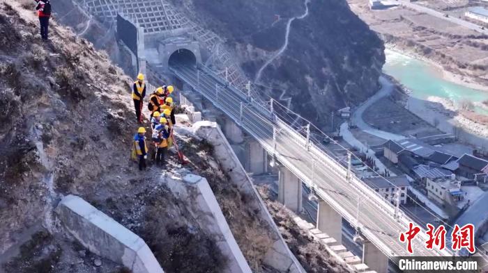 近日,鐵路工作人員在川青鐵路沿線排危。冉杰 攝