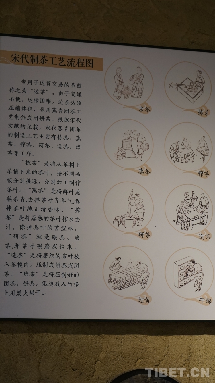 推開茶馬司的大門,出現(xiàn)在眼前的“茶馬司”石碑用漢藏兩種文字記錄著茶馬司的興衰歷史。“宋時(shí)因連年用兵,所需戰(zhàn)馬,多用茶換取。神宗熙寧七年,派李杞入川,籌辦茶馬政事,于名山,以名山茶易馬用……明洪武時(shí),對(duì)茶葉實(shí)行官買官銷,由茶馬司主持交易……”