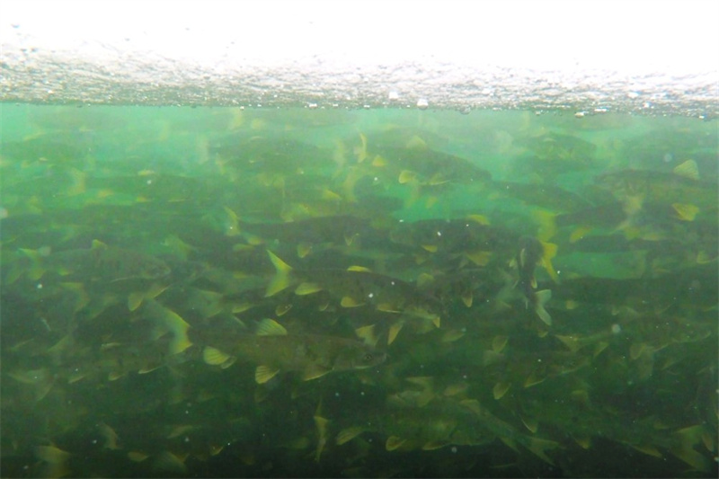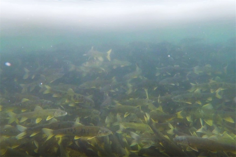 隨著氣溫回暖,連日來(lái),青海省海北藏族自治州剛察縣境內(nèi)青海湖北岸的部分地區(qū)開始出現(xiàn)解凍跡象。冰面之下,成群的青海湖裸鯉(湟魚)在清澈的湖水中游弋,靜待春至大湖開。