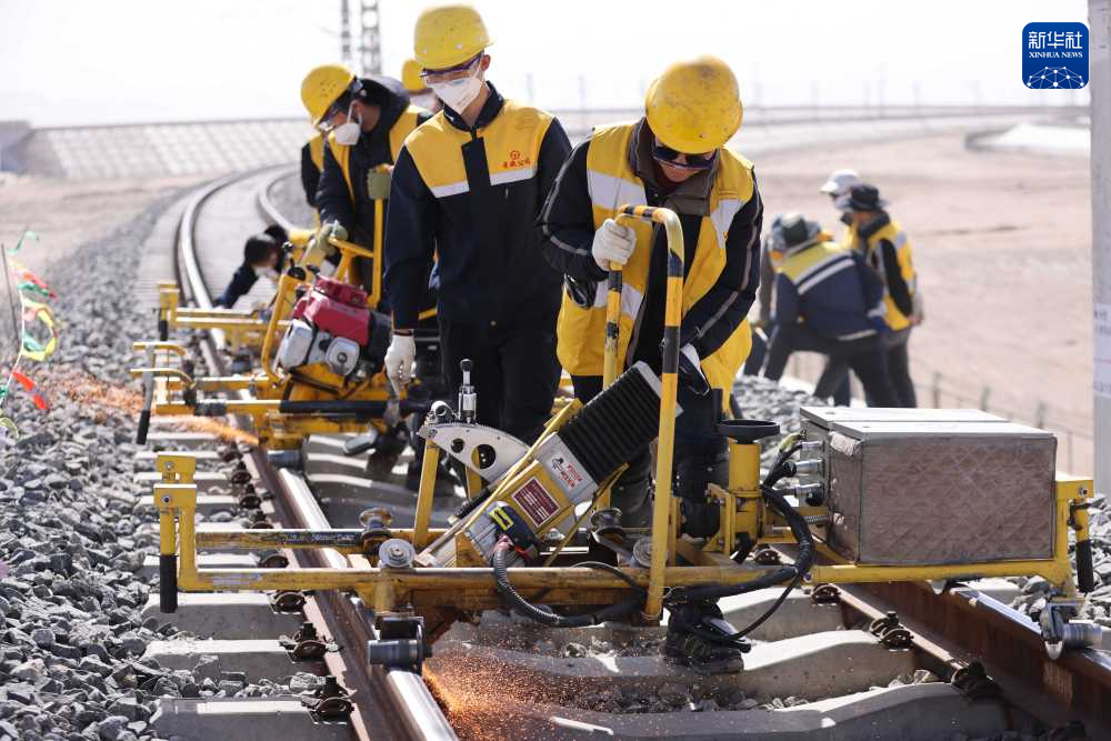 進(jìn)入4月,昆侖山上仍被白雪覆蓋。1日一早,在昆侖山腳下的格庫(kù)鐵路格爾木至格爾木南上行聯(lián)絡(luò)線區(qū)間防護(hù)欄外,中國(guó)鐵路青藏集團(tuán)有限公司格爾木工務(wù)段重點(diǎn)維修車(chē)間的8名職工正仔細(xì)地檢查裝備,為稍后的鋼軌“拋光”作業(yè)做好準(zhǔn)備。