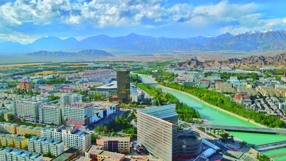 巴音河畔優(yōu)美的城市畫卷。蘇烽 攝