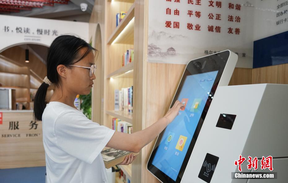 6月19日,市民在青海省海西蒙古族藏族自治州格爾木市一城市書房?jī)?nèi)借閱書籍。中新社記者 馬銘言 攝