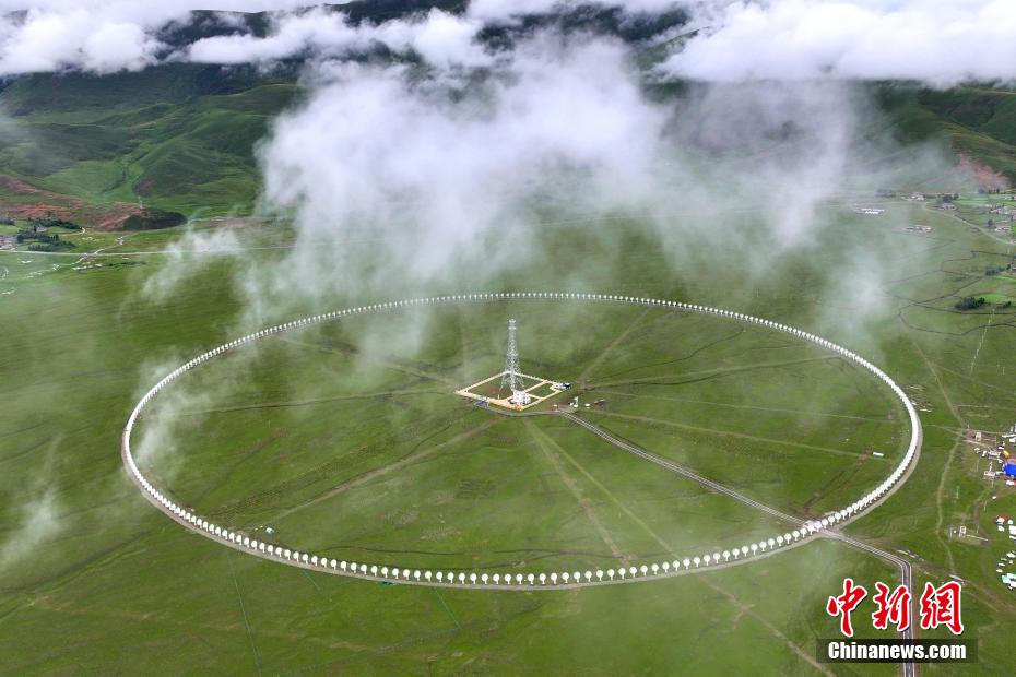 7月22日,四川稻城縣,云霧下的圓環(huán)陣太陽射電成像望遠(yuǎn)鏡全景。(無人機(jī)照片)中新社記者 劉忠俊 攝