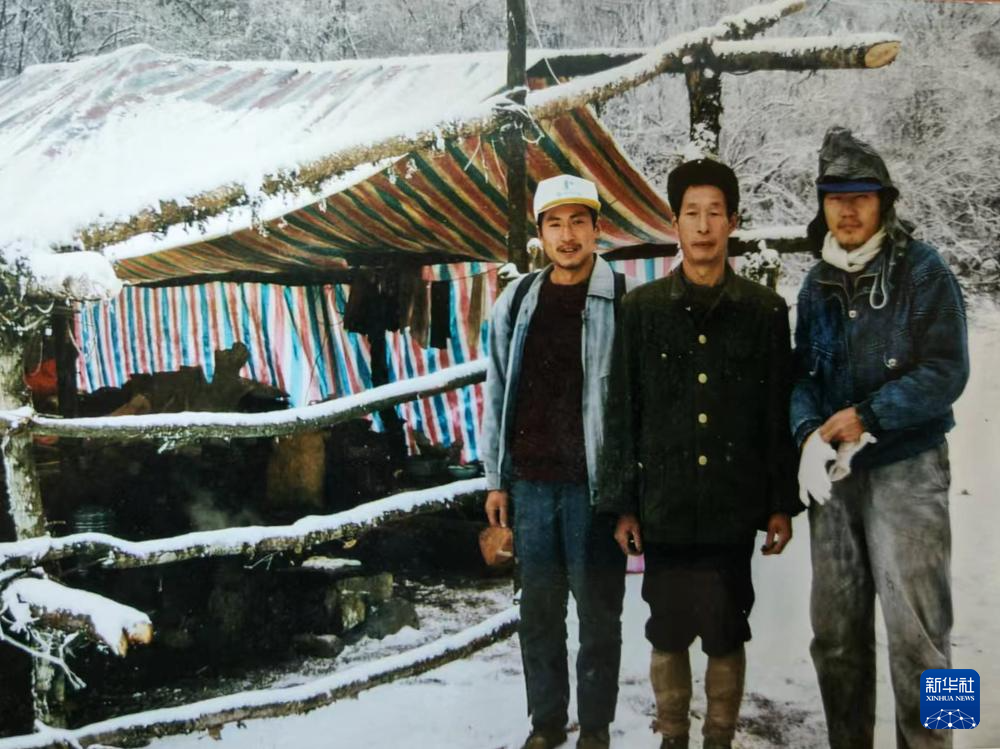 這是1996年唐玉林(左)、父親唐代貴(中)和保護區(qū)科研人員顧海軍在四川白河國家級自然保護區(qū)內(nèi)的合影(翻拍照片)。新華社記者 王曦 攝
