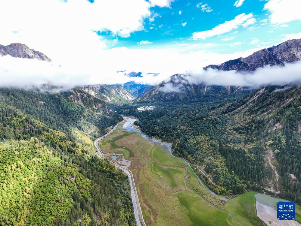 這是10月10日拍攝的九寨溝縣中國綠發(fā)華美勝地度假區(qū)(無人機(jī)照片)。新華社記者 王曦 攝