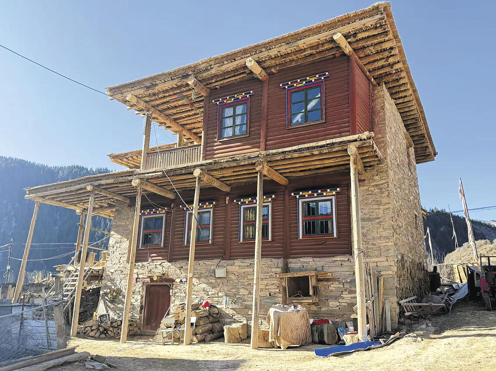 眼前是一座標(biāo)準(zhǔn)的藏式碉樓,整體三層,高度近10米,外部由大小不一石片砌成,墻體呈梯形,屋頂皆平。“我們這里的碉樓大多為二至三層,每一層都有不同的功能劃分。”蘭聞?wù)廴赫f(shuō)。