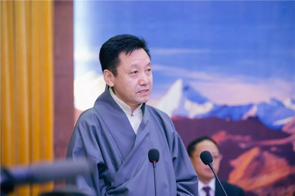 十一世班禪在致辭中指出,歷世班禪是藏傳佛教愛國愛教的一面旗幟。傳承和弘揚(yáng)歷世班禪大師愛國愛教思想,對于推動藏傳佛教再弘期更好地與中國特色社會主義相適應(yīng),推動藏傳佛教更好地為維護(hù)國家統(tǒng)一,促進(jìn)中華民族團(tuán)結(jié),維護(hù)社會和諧穩(wěn)定服務(wù),具有非常重要的作用?!稓v世班禪文集》歷史意義深遠(yuǎn)。以書刊為媒介符合時代潮流,能夠讓廣大的信教群眾,宗教界專家學(xué)者,特別是年輕一代更便捷,更系統(tǒng)學(xué)習(xí)歷世班禪愛國愛教思想的精髓。他希望藏傳佛教界人士,要以藏傳佛教歷代愛國愛教先賢大德為榜樣,感恩黨,感恩祖國,努力聞思顯密精要,為眾生帶來利樂。
