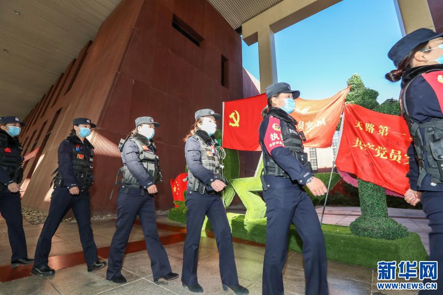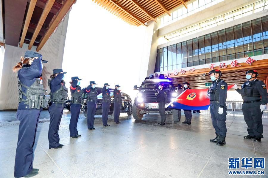 1月10日,中國人民警察節(jié)當(dāng)日,拉薩火車站派出所“女子格?;ā本M在巡邏。新華社發(fā)(胡安鵬、黃飛攝影報(bào)道)