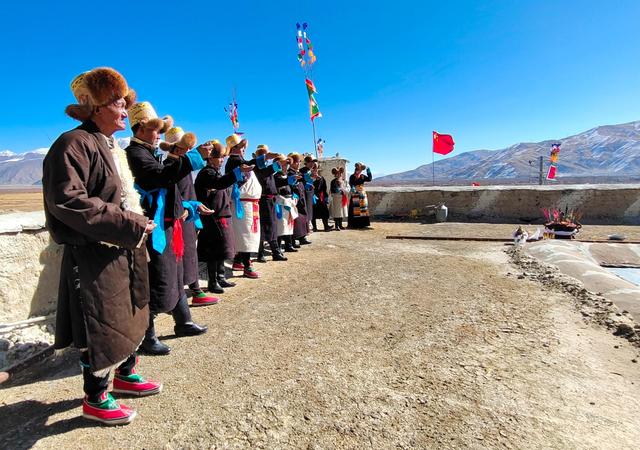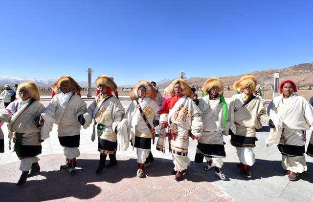 2月12日,拉薩市當雄縣牧民跳起鍋莊舞。新華社記者 覺果 攝