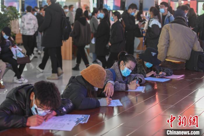 求職者在招聘會(huì)上填寫個(gè)人信息。貢嘎來(lái)松 攝