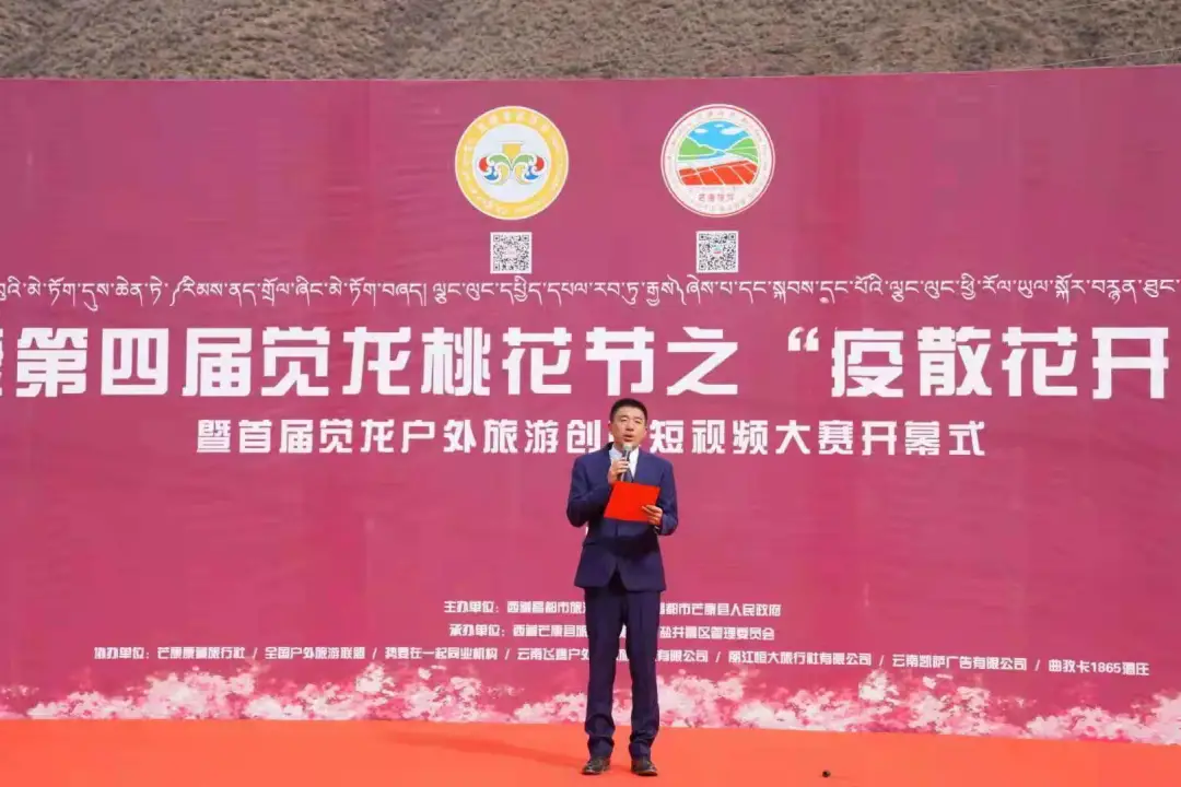 4月3日,由芒康縣人民政府、昌都市旅游發(fā)展局主辦,芒康縣旅游發(fā)展局、鹽井景區(qū)管委會(huì)承辦的“第四屆覺(jué)龍?zhí)一ü?jié)之“疫散花開(kāi).春暖覺(jué)龍”暨首屆覺(jué)龍戶(hù)外旅游創(chuàng)意短視頻大賽”在納西民族鄉(xiāng)覺(jué)龍村舉辦隆重的開(kāi)幕式。