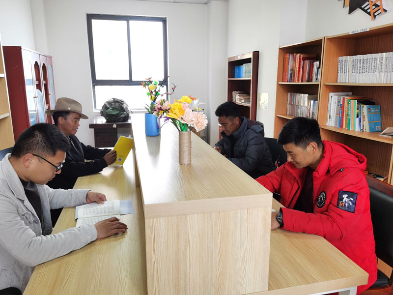 圖為林芝市察隅縣下察隅鎮(zhèn)竹尼村村民在農(nóng)家書屋閱讀書籍。