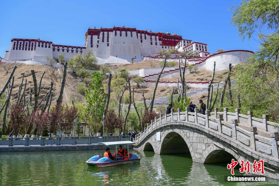 西藏官方發(fā)布數(shù)據(jù)顯示,2021年一季度,西藏接待國內(nèi)外游客171萬人次,同比增長2.4倍,實(shí)現(xiàn)旅游收入13.78億元人民幣,增長3.1倍?!拔逡弧奔倨趯⒅?,在拉薩布達(dá)拉宮、八廓街等地可以看到,身著藏族傳統(tǒng)服飾拍照留念的游客絡(luò)繹不絕,西藏旅游預(yù)計(jì)將迎來小高潮。圖為4月29日,藍(lán)天白云映襯下的布達(dá)拉宮。中新社發(fā) 貢嘎來松 攝