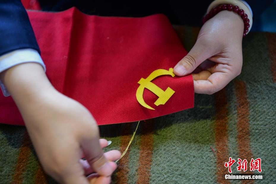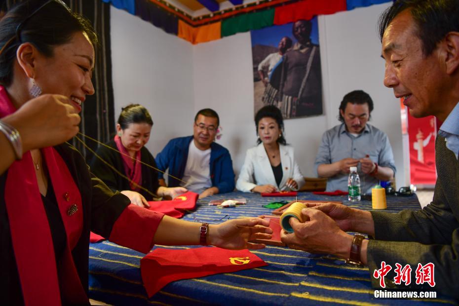 6月29日上午,西藏自治區(qū)民辦職業(yè)技能培訓學校行業(yè)黨委在拉薩市城關(guān)區(qū)開展慶祝建黨100周年活動,現(xiàn)場黨員們通過開展重溫入黨誓詞、縫制黨旗、走訪慰問等紀念活動,回顧黨的百年光輝歷程。圖為縫制黨旗現(xiàn)場。貢嘎來松 攝