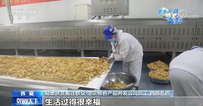 易地扶貧搬遷群眾 洛宗特色產品開發(fā)公司員工 四郎扎巴:我這個車間主要負責洗青稞、青稞剝皮,我妻子在泡菜車間工作,她每月2400元,我們倆加起來一年也有6萬多(元)收入,以前一年收入不到1萬(元),搬過來以后在這邊實現(xiàn)就業(yè),收入各方面都很穩(wěn)定,生活過得很幸福。