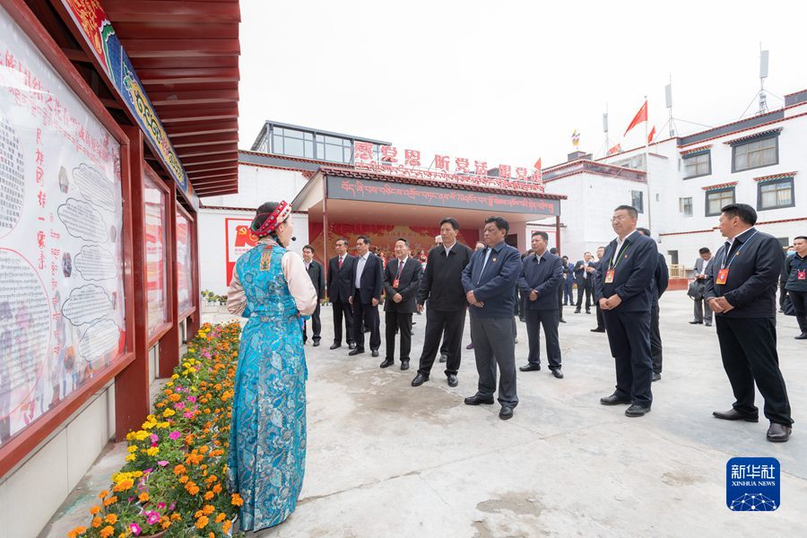 8月20日,中央代表團山南、日喀則分團帶著以習近平同志為核心的黨中央的深切關懷和全國人民的深情祝福,分別看望慰問當?shù)馗髯甯鹘绺刹咳罕?。這是全國人大常委會副委員長、中央代表團副團長白瑪赤林率日喀則分團來到日喀則桑珠孜區(qū)城北街道辦事處江洛康薩社區(qū),視察民族團結(jié)創(chuàng)建和新時代文明實踐中心建設工作情況。新華社記者 翟健嵐 攝