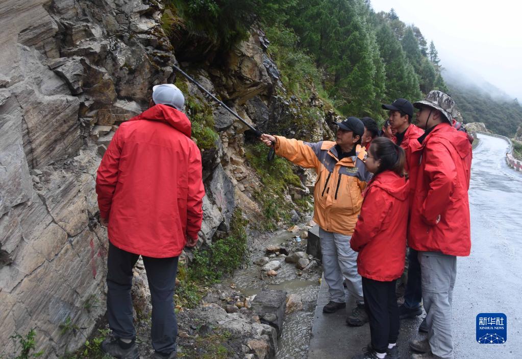 9月7日,在西藏日喀則市一處山體,中科院地理科學(xué)與資源研究所客座教授李渝生(左二)和年輕的科考隊員分析地質(zhì)災(zāi)害問題。新華社記者 杜剛 攝