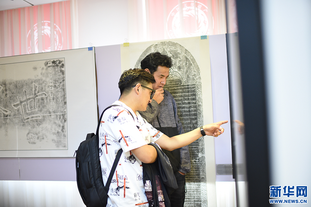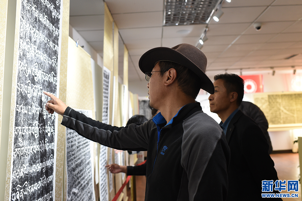 9月29日,在西藏大學(xué)新校區(qū)圖書(shū)館,參觀者觀賞石碑拓片內(nèi)容。新華網(wǎng) 旦增努布攝