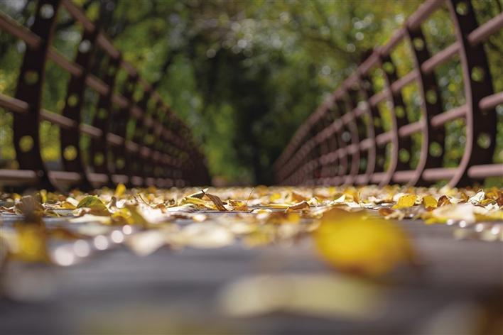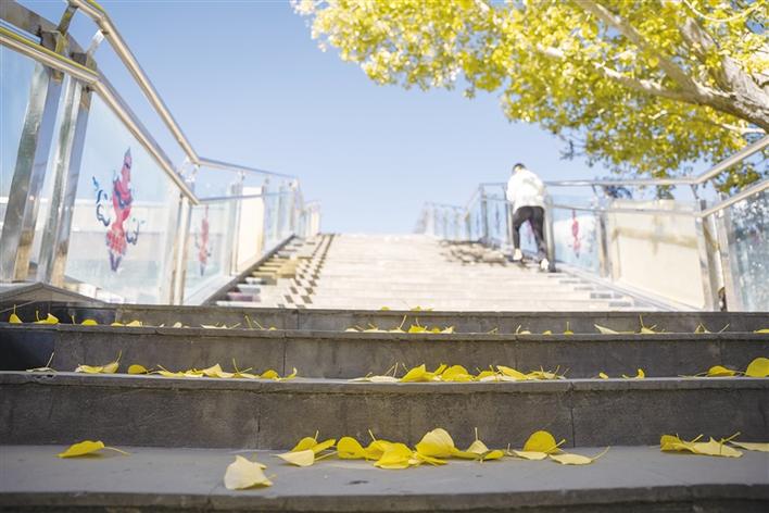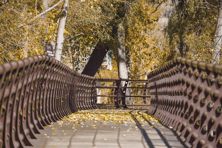 陽(yáng)光溫暖地包裹著大地,穿過(guò)草木,穿過(guò)人群,在地上折射出好看的光影。樹(shù)木一排排整齊站立著,樹(shù)葉時(shí)不時(shí)隨風(fēng)飄落,落在地面,鋪?zhàn)饕坏亟鹕牡靥?,行人走過(guò),發(fā)出“沙沙”的聲響,伴著人們的說(shuō)笑聲,格外動(dòng)聽(tīng)美妙。