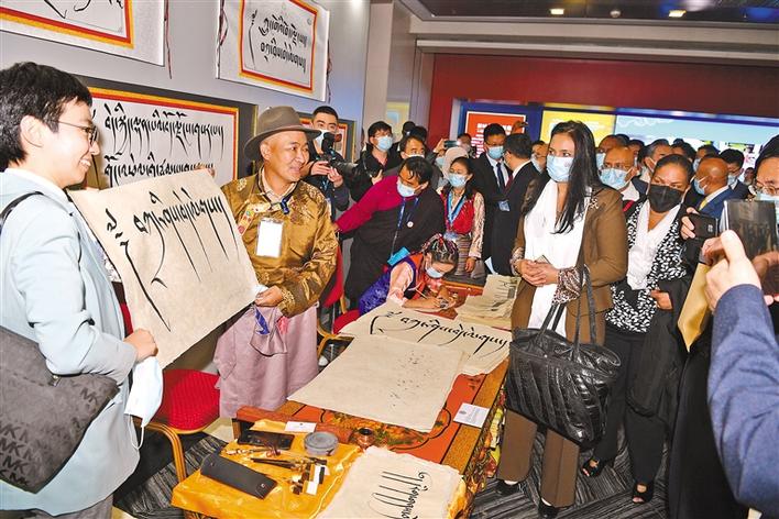清朝道光皇帝冊封十一世達(dá)賴?yán)锝饍?、《中央人民政府和西藏地方政府關(guān)于和平解放西藏辦法的協(xié)議》等一件件歷史文物,充分證明了西藏自古以來就是祖國不可分割的一部分。藏文書法、傳統(tǒng)手工藝和酥油茶等高原飲食文化,充分展示了西藏與祖國各地在漫長歷史長河中的各民族廣泛交往、全面交流、深度交融。