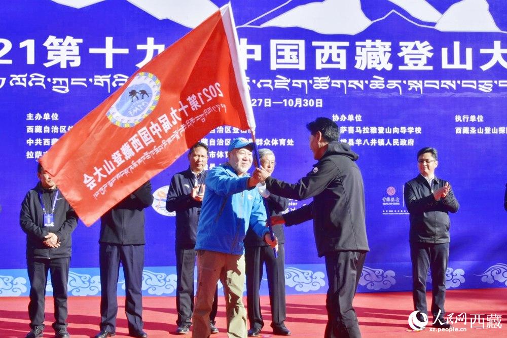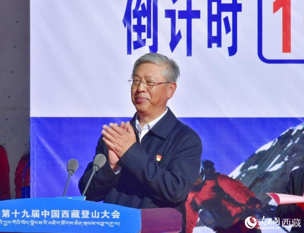 中國(guó)登山隊(duì)隊(duì)長(zhǎng)王勇峰致辭。 人民網(wǎng) 李海霞攝