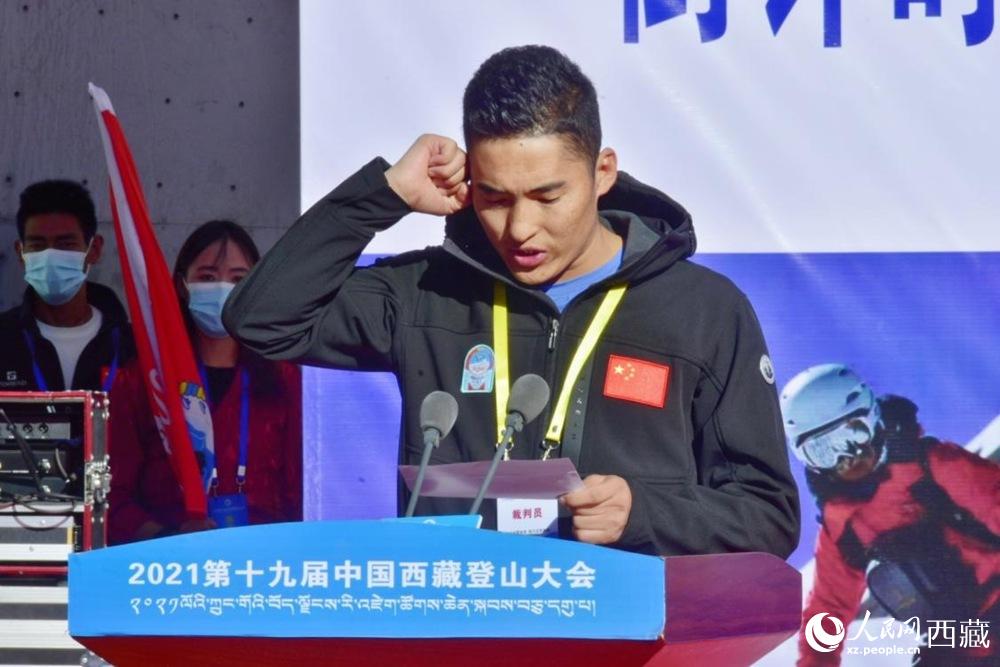 西藏自治區(qū)體育局局長(zhǎng)尼瑪次仁致辭。人民網(wǎng) 李海霞攝
