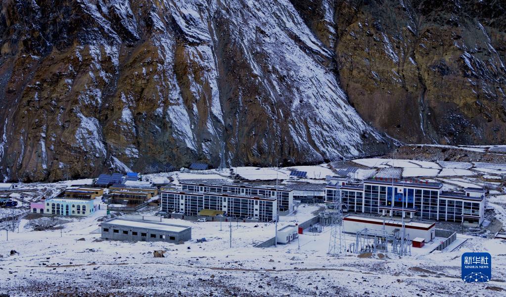 風(fēng)雪中的楚魯松杰鄉(xiāng)政府(2019年1月8日攝)。新華社記者 陳尚才 攝