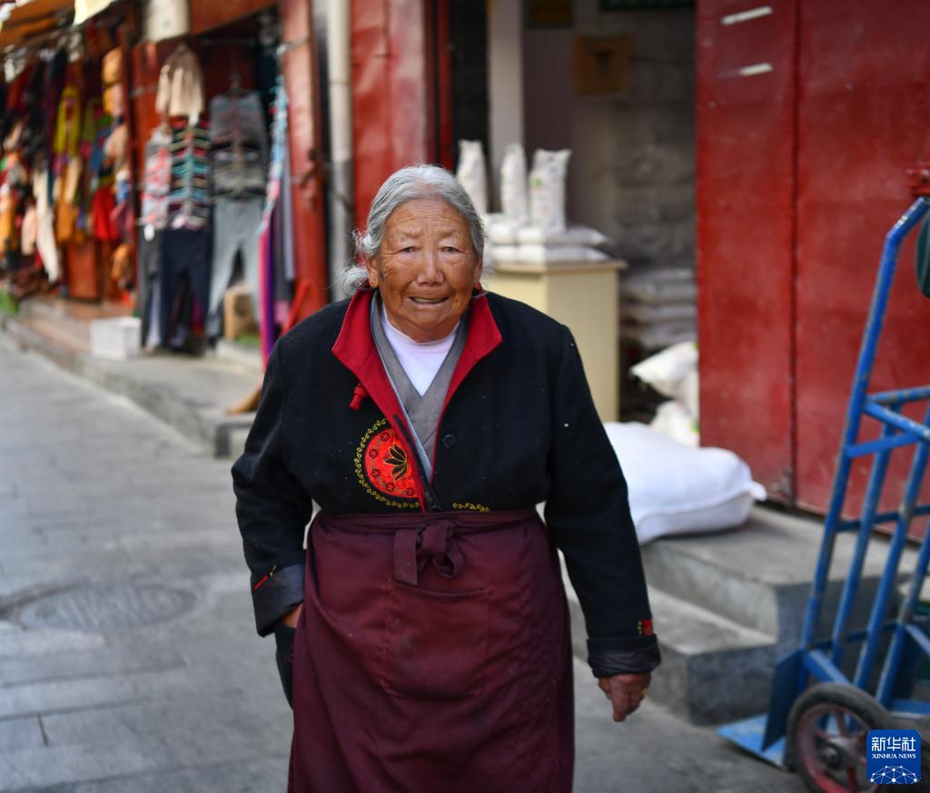 馬昌吉老人在八廓街老城區(qū)的家門口(12月7日攝)。新華社記者 晉美多吉 攝