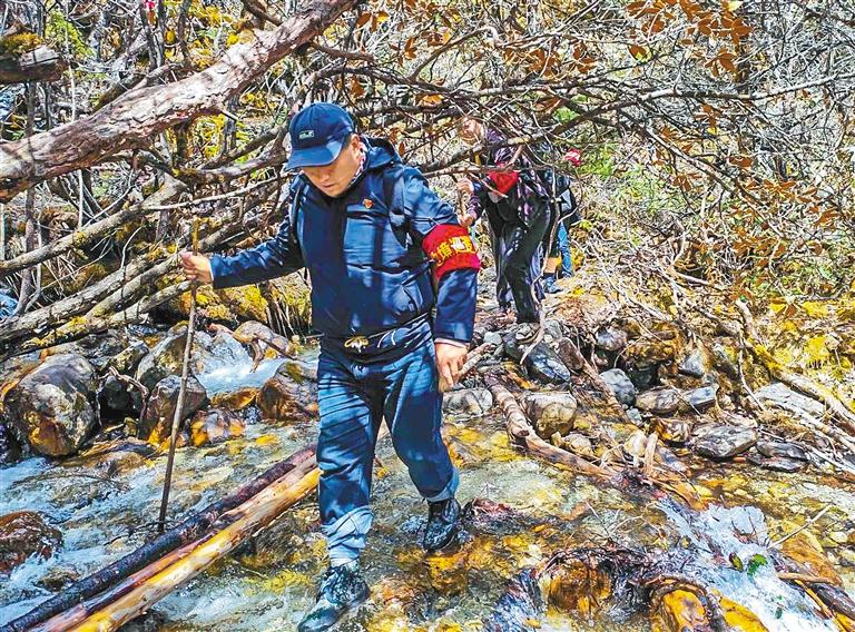 2017年冬天,勒布溝大雪紛飛。錯那縣勒鄉(xiāng)干部格桑旦增看著屋外的雪花,還是決定動身,去巡邊。一行4人小心翼翼往山上走,艱難到達巡邏標記點,天色已晚,雪卻越下越大,深的地方已經(jīng)齊腰。格桑旦增思忖:“今天是回不去了?!彼麄?nèi)甜嚢ゐI,在風雪中熬了10多個小時。第二天上午,勉強能看清四周樹木。格桑旦增壯膽帶路,一行人摸索徒步8公里,回到了村里。