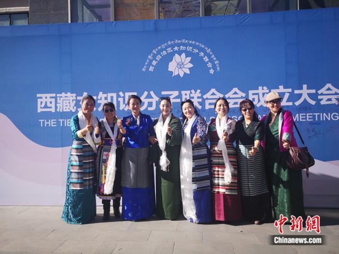 2019年,邊巴拉姆(左三)參與成立西藏自治區(qū)女知識(shí)分子聯(lián)合會(huì),并擔(dān)任首任會(huì)長(zhǎng)。受訪者供圖