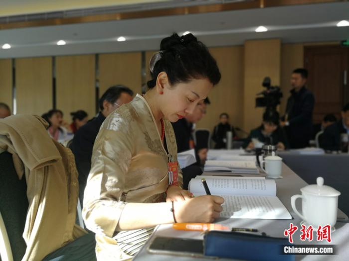 圖為邊巴拉姆在全國(guó)兩會(huì)上參加政協(xié)小組會(huì)。受訪者供圖