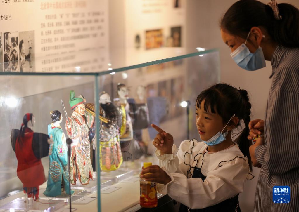 參觀者在木偶藝術(shù)展展廳內(nèi)觀賞木偶。新華社記者 姜帆 攝