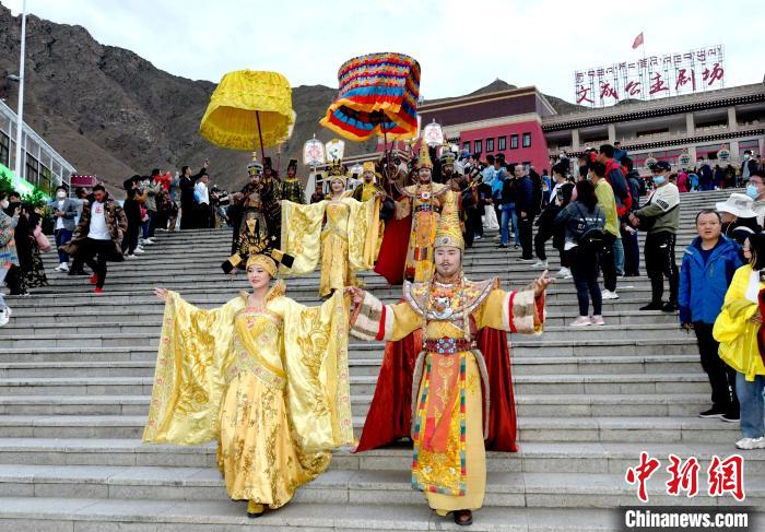 當(dāng)晚,《文成公主》的演員們身著特色民族舞蹈服飾現(xiàn)身劇場(chǎng)外,巡游在慈覺(jué)林藏院風(fēng)情街,重現(xiàn)“公主”與“贊普”的和親盛況,并與來(lái)自五湖四海的觀眾近距離接觸,切身感受非比尋常的西藏文化。