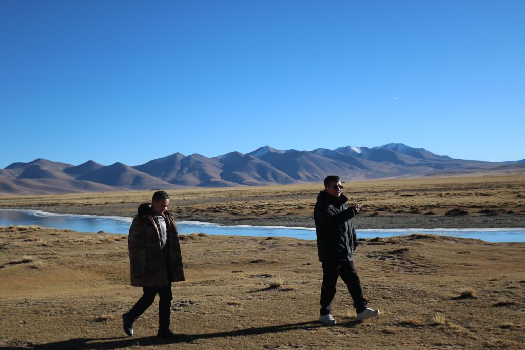 王軍強(qiáng)(右)在申扎縣巴扎鄉(xiāng)查藏藏布巡河。(圖片由申扎縣委宣傳部提供)