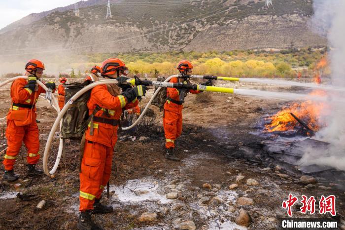 圖為林芝市2022年處置森林火災(zāi)應(yīng)急演練現(xiàn)場(chǎng)?!钣例垺z