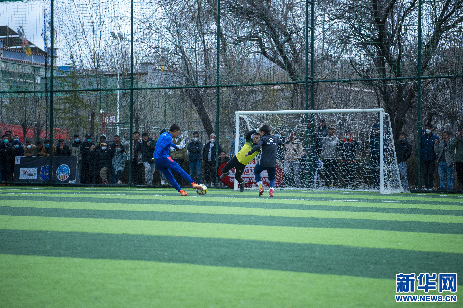 2月14日,巔炯邁瓦隊球員西繞加措在門前抽射。 新華網 旦增努布 攝