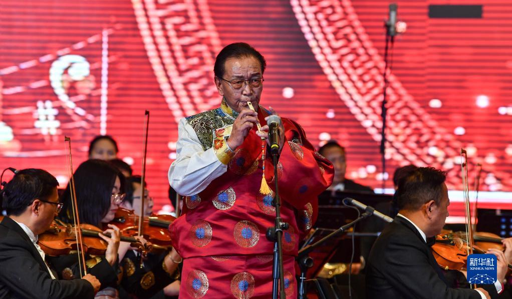 2月18日,演奏家次旦在2023年藏歷新年音樂(lè)會(huì)上表演鷹笛獨(dú)奏《雪域牧歌》。新華社記者 晉美多吉 攝