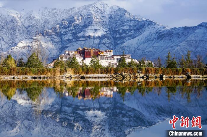 圖為游客在拉薩南山公園與布達拉宮雪景合影。江飛波 攝