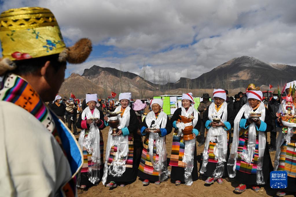 西藏林周縣強(qiáng)嘎村的春耕儀式現(xiàn)場(3月16日攝)。新華社記者 張汝鋒 攝
