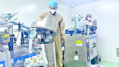 西藏甘露藏藥股份有限公司藏藥生產(chǎn)車間內(nèi),工人在忙碌。次仁拉姆攝/光明圖片