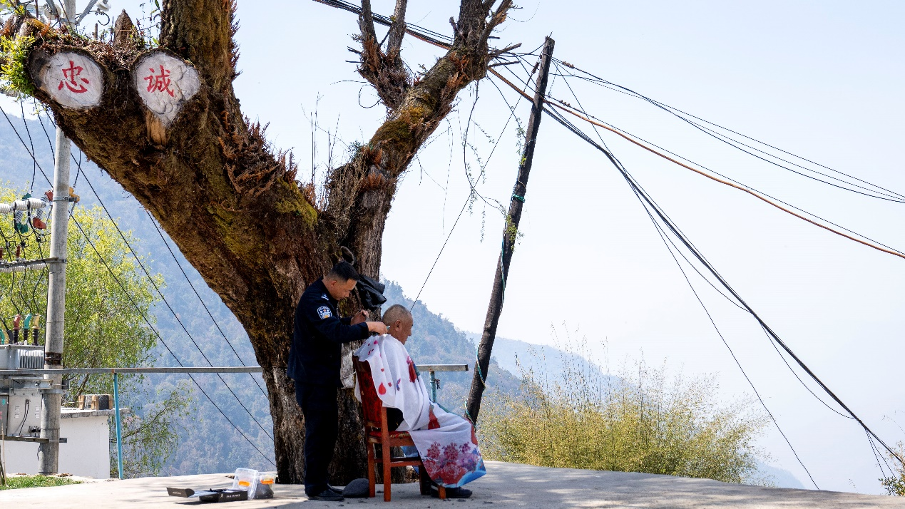 轄區(qū)村民和派出所民警關(guān)系很要好,民警日常走訪群眾時(shí),經(jīng)常會(huì)為群眾送去罐頭、蔬菜等生活物資。就在記者采訪當(dāng)天,轄區(qū)村民次仁堅(jiān)參來找民警幫忙理發(fā),“咱們警民是一家嘛,我對(duì)咱們民警的理發(fā)技術(shù)很放心!”次仁堅(jiān)參笑著說。