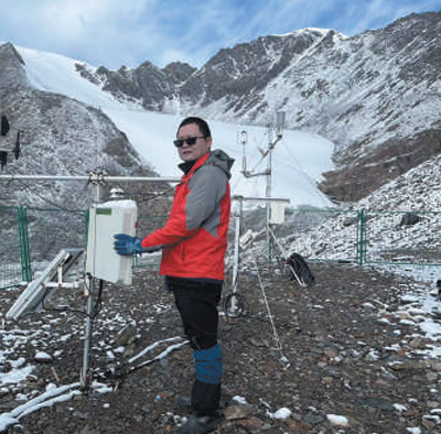 王飛騰在天山烏魯木齊河源1號冰川綜合觀測場觀測。 記者 王錦濤攝