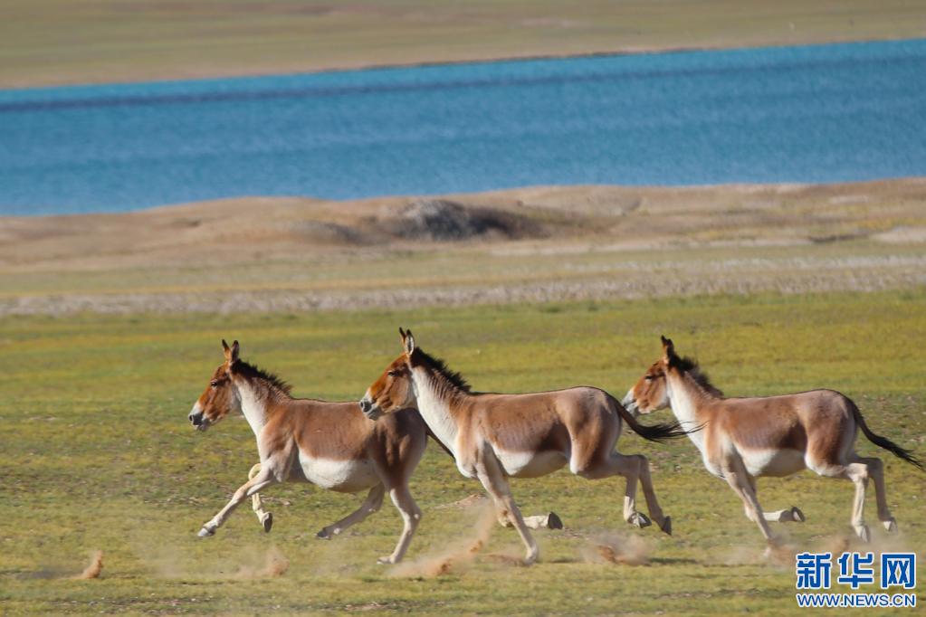 西藏改則縣奔騰的藏野驢(2022年4月8日)。新華社發(fā)(邊巴 攝)