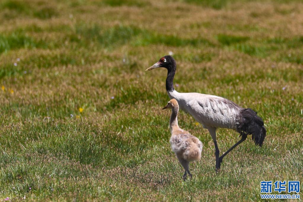 西藏改則縣麻米鄉(xiāng)成長中的黑頸鶴(2022年7月25日)。新華社發(fā)(邊巴 攝)