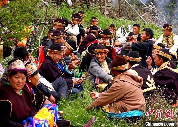 米林村處處生機(jī)盎然,有盛開的桃花、油菜花、綠色的麥田,山林間不時傳來的鳥鳴聲,似乎都是在一起祈禱今年的豐收。村民們身上還背有經(jīng)文,圍繞全村田園轉(zhuǎn)上一圈,轉(zhuǎn)到每一塊農(nóng)田前都要煨桑祈福豐收,舉行祭祀活動。祭祀活動后,能歌善舞的婦女們總是要高歌起舞,以此來表達(dá)自己喜悅的心情。