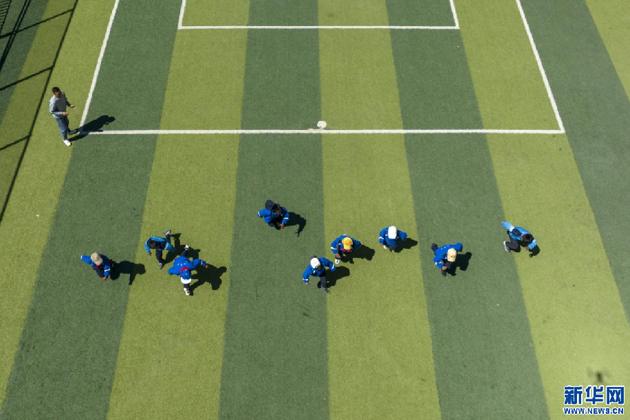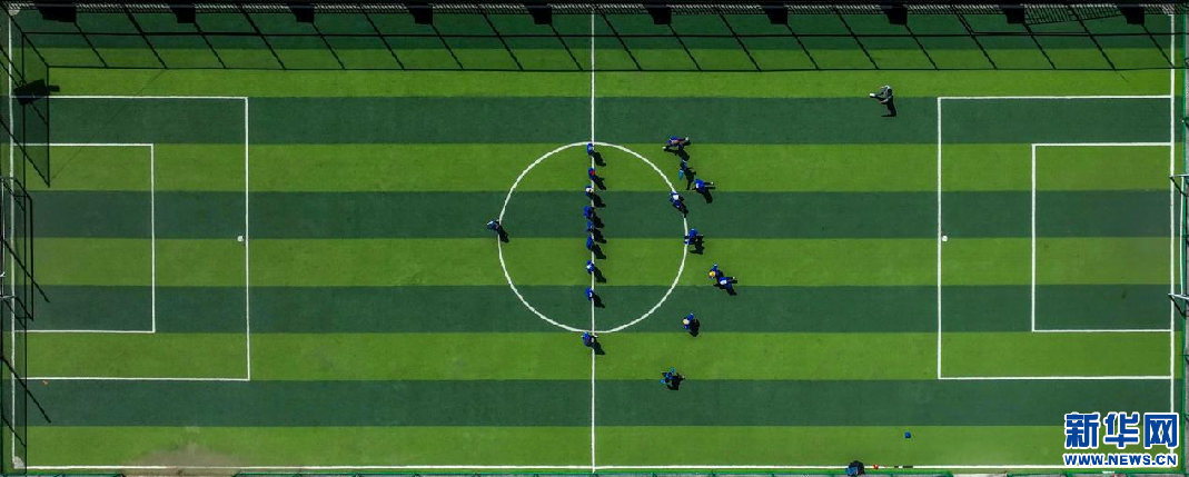 5月15日,西藏定日縣扎西宗鄉(xiāng)完全小學(xué)學(xué)生在上體育課(無人機(jī)照片)。新華網(wǎng) 旦增努布 攝