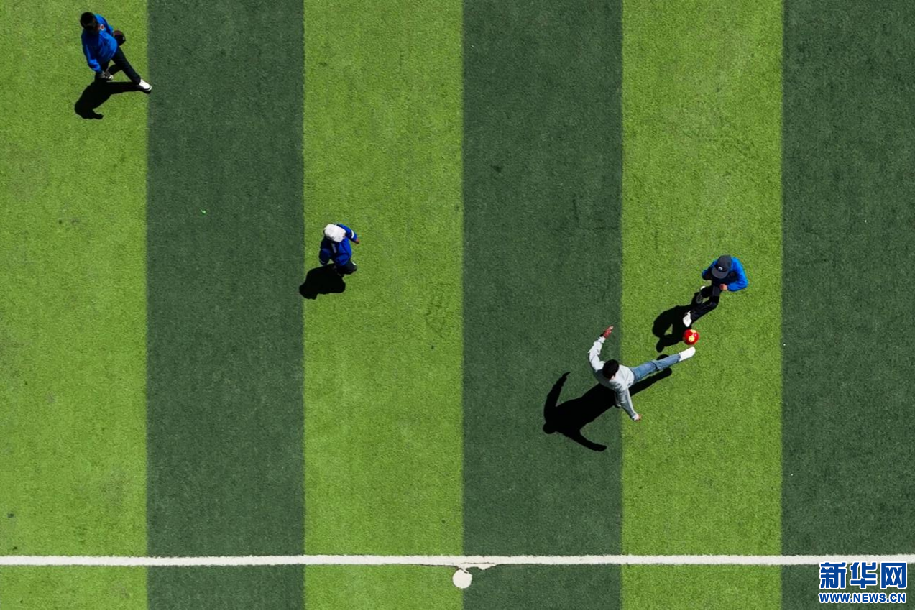 5月15日,西藏定日縣扎西宗鄉(xiāng)完全小學(xué)學(xué)生在比賽中搶球(無人機(jī)照片)。新華網(wǎng) 旦增努布 攝